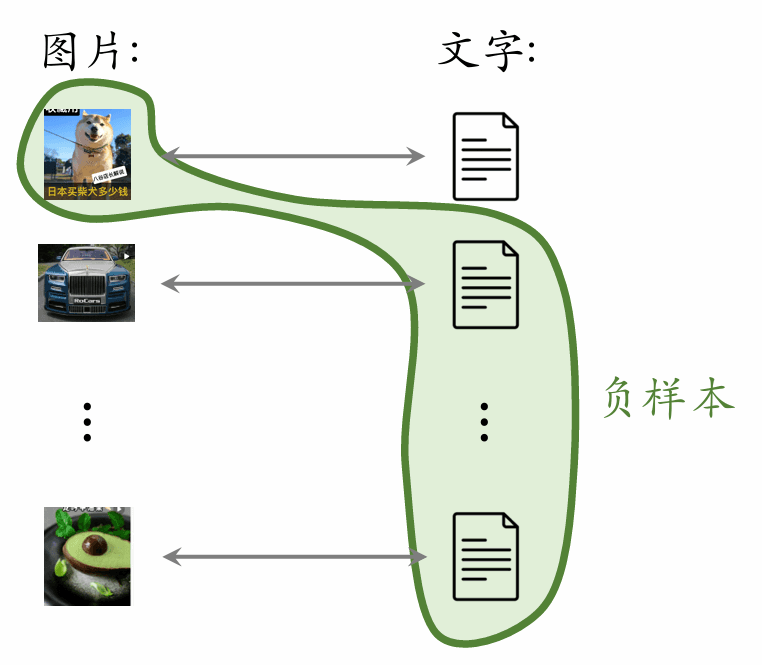 - 一张图片和 条文本组成负样本。