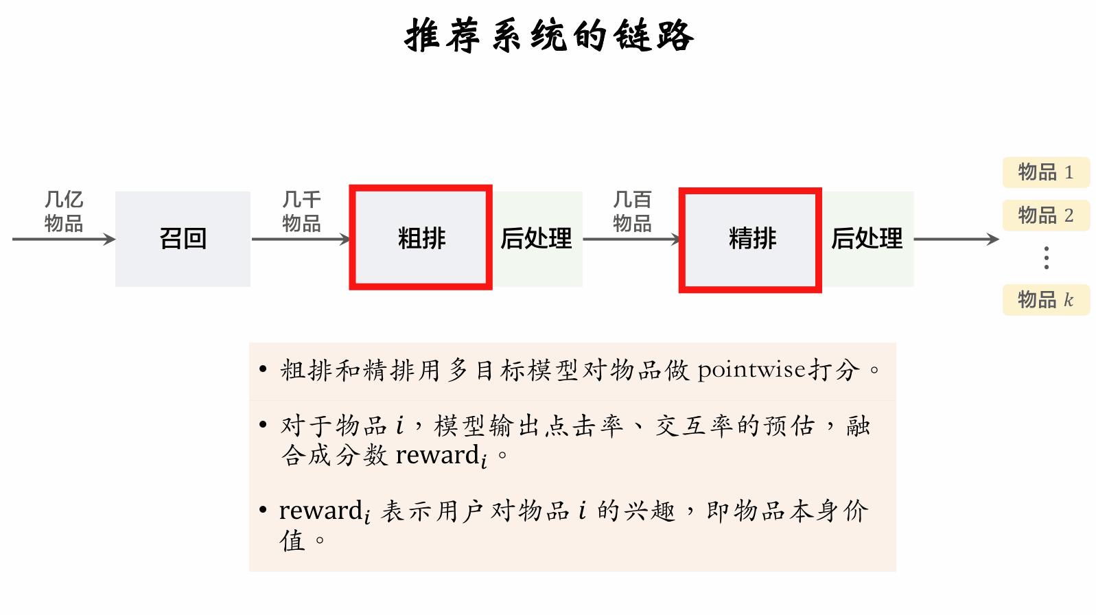 精排给 个物品打分:。