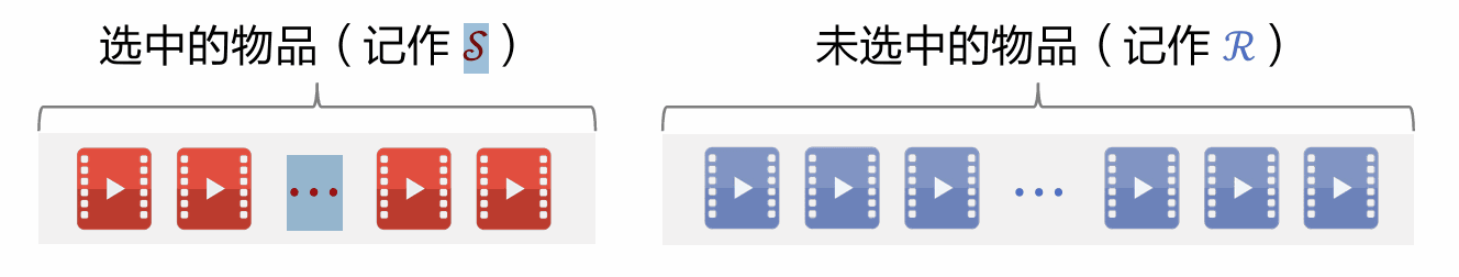 - 选择精排分数 最高的物品,从集合 移到 。